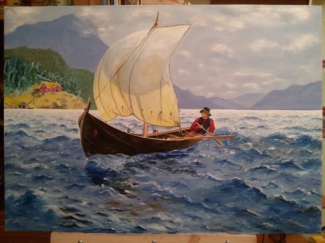 "человек в лодке" Ирина Нестеренко Живопись, пейзажи, натюрморты, портреты